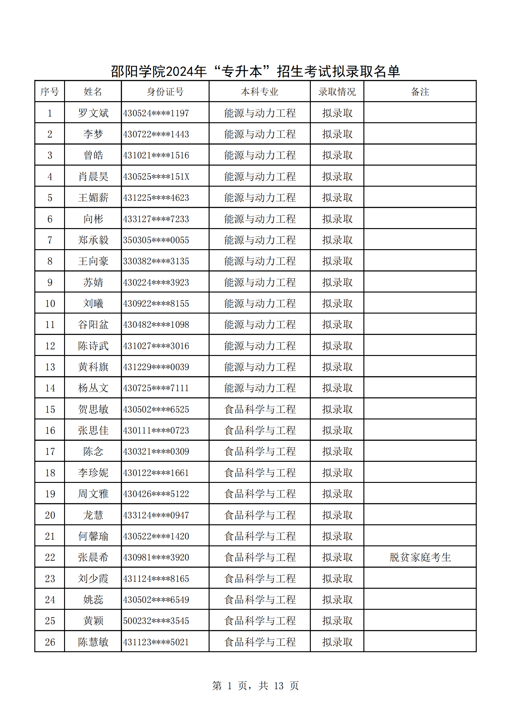 邵阳学院2024年“专升本”招生考试拟录取名单公示按照《湖南省2024年普通高等学校专升本考试招生工作实施方案》(湘教发[2023]50号)和省教育考试院《关于做好2024年普通高等学校专升本招生录取工作的通知 升本资讯 2024-06-03