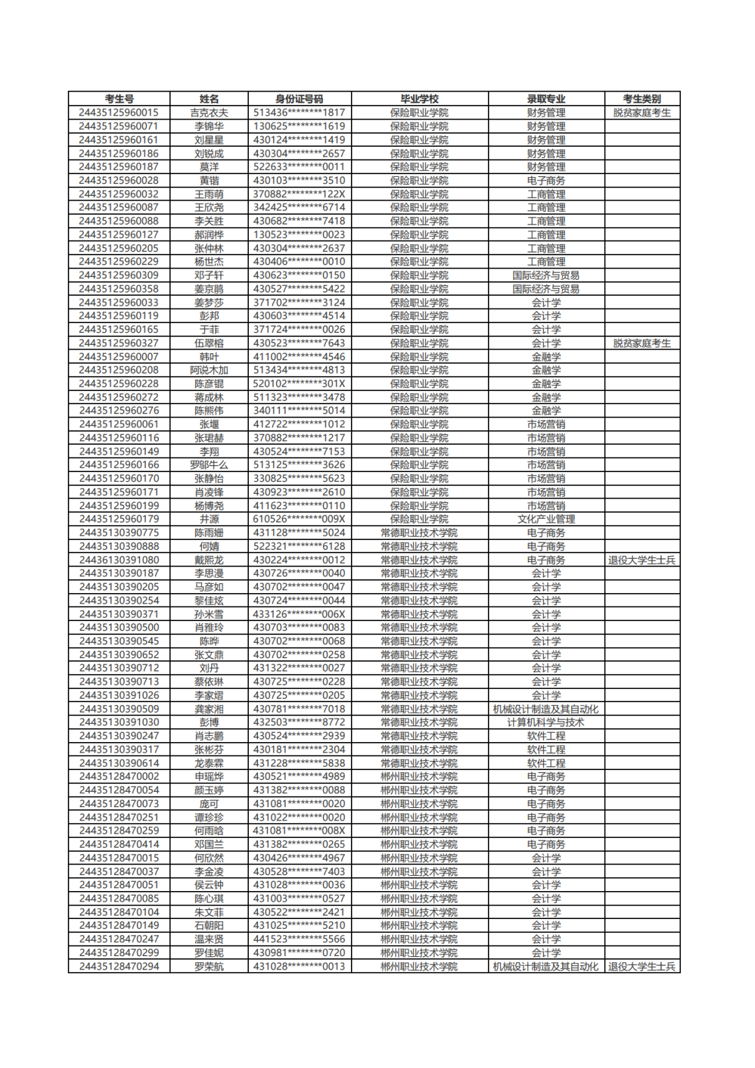 【录取名单】录取2765人,湖南涉外经济学院2024年专升本拟录取名单公示(含免试生、脱贫家庭考生)根据湖南省教育厅《关于做好2024年湖南省普通高等学校专升本考试招生工作的通知》(湘教发〔2023〕50号)和《湖南涉外经济学院2024年专升本招生章程》等文件 升本资讯 2024-06-03