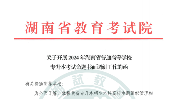 关于开展2024年湖南省普通高等学校专升本考试命题书面调研工作的函
