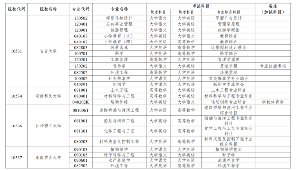 关于公布湖南省2024年普通高校专升本考试招生专业考试科目的公告